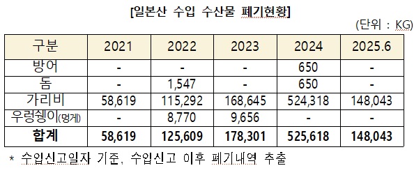 [밀착취재] 연간 폐기되는 가리비 2024년 524톤 관세법 제 160조에 의해 관세청에 신고된 일본산 가리비는 2024년 기준 524.318톤 …